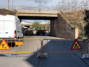 Els operaris han iniciat aquest matí la reparació del pont de la via del tren, al final del carrer Sant Jaime d’Almassora, per a garantir la seua subjecció i prevenir despreniments. L’empresa Facsa, concessionària del servei de clavegueram i aigua potable, aprofitarà la intervenció per a millorar la canalització
