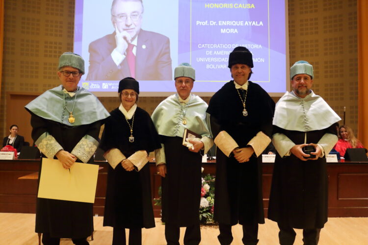 La Universidad Pablo de Olavide (UPO) y la Universitat Jaume I (UJI) han nombrado doctor honoris causa al historiador Enrique Ayala Mora. El acto se celebró este jueves en Sevilla. Ambas universidades se unieron para premiar la gran carrera de este experto ecuatoriano. Es uno de los historiadores más importantes de América Latina hoy en día.