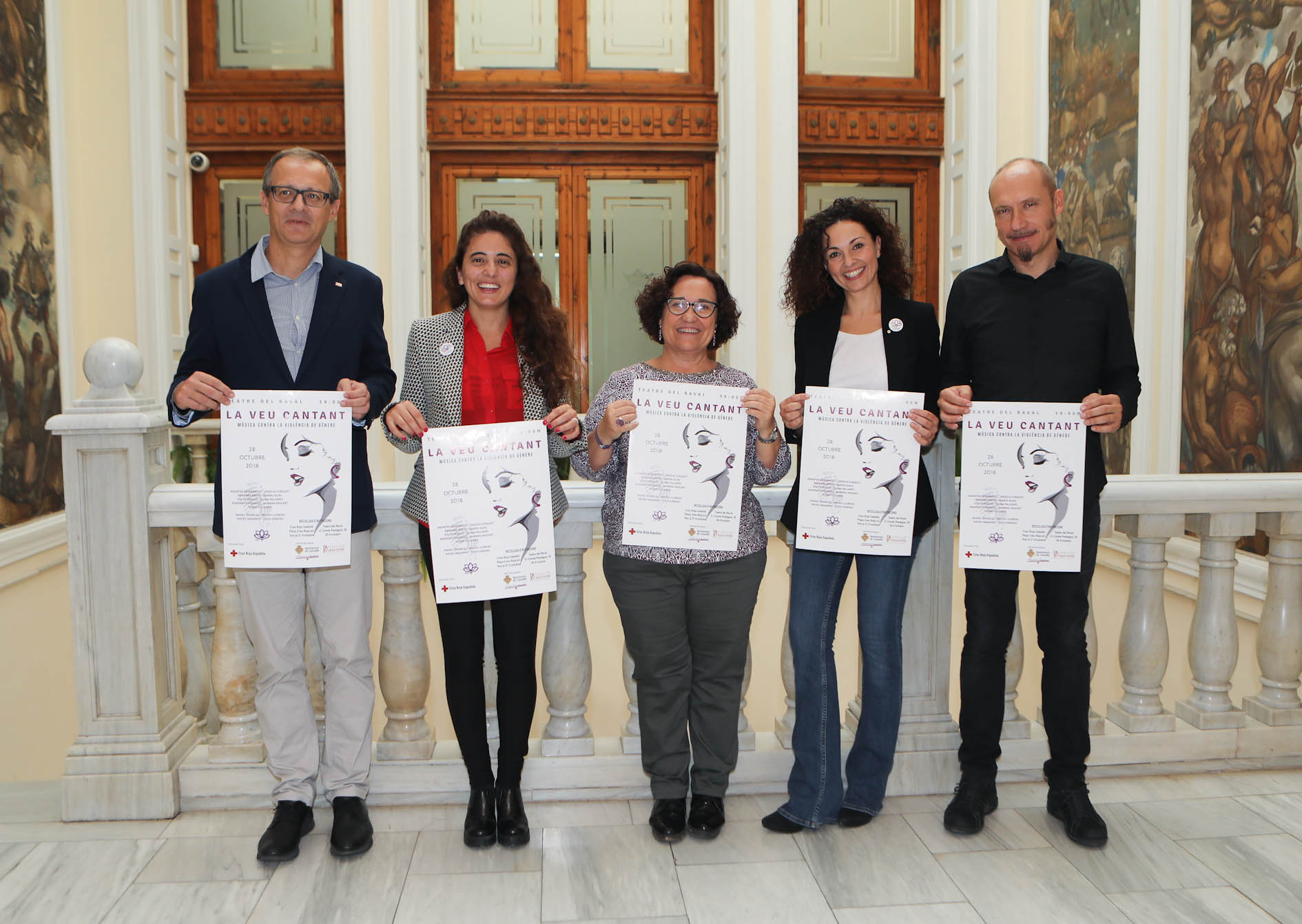 La vicealcaldesa i regidora d’Igualtat, Ali Brancal, ha presentat aquest matí el concert especial ‘La Veu Cantant’, una iniciativa del projecte ‘Juntes’ de Creu Roja, en el qual col•labora el Servei d’Igualtat d’Oportunitats de Dones (SIO) i la Fundació Dávalos Fletcher. En la presentació, Brancal ha estat acompanyada d’Antonio Fayos, vicepresident de Creu Roja; Manel Brancal, director artístic del concert; Raquel Martí, voluntària referent del programa ‘Juntes’ i Cintia Tiano, psicòloga del projecte ‘Juntes’.