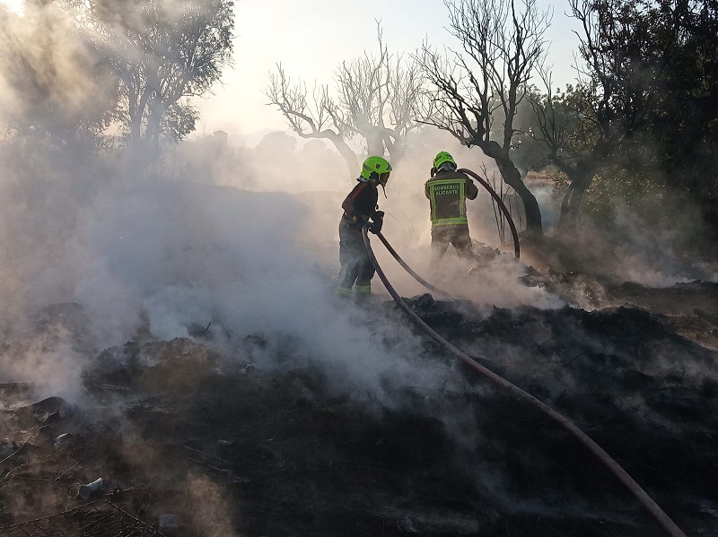 L’avís es va produir sobre les 19,30 hores, quan van alertar de l’incendi, tres dotacions del Parc del SPEIS amb deu de bombers i quatre Policies Locals d’Alacant es van desplaçar immediatament al lloc dels fets, i van començar a atacar el foc que tenia un focus d’ignició i a envoltar-lo amb tres línies d’aigua per a aconseguir controlar-lo amb diferents equips.