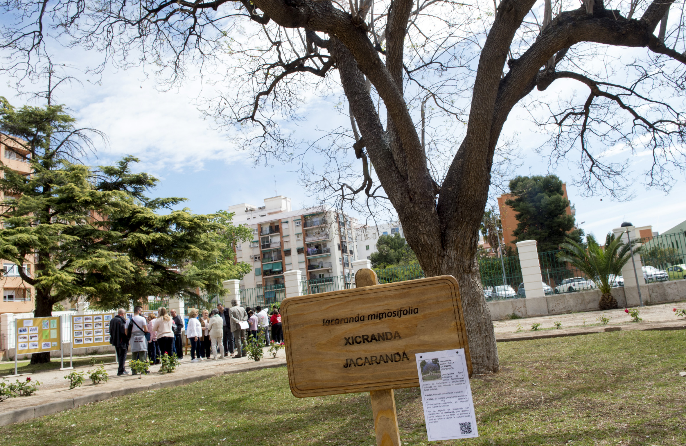 Hibisc de Síria, Pi Blanc, Mèlia o Xicandra són algunes de les espècies arbòries que estan en el jardí del Complex Educatiu Misericòrdia, a València. Un rètol de fusta les identifica gràcies al projecte ‘Arboretum Misericòrdia’, un treball que han dut a terme els alumnes de “Trabajos de Carpintería y Muebles” de FP Adaptada Nuestra Señora de la Misericòrdia, dependent de la Diputació de València, i el departament de Tecnologia de l’IES número 26 Misericòrdia, tots dos centres integrats en el complex.