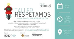 El cicle de tres tallers que dirigeix l’associació Robotme arriba a la seua fi. En aquesta ocasió, els escolars de 10 i 14 anys idearan solucions tecnològiques per a previndre i combatre l’assetjament escolar. Es tracta d’una acció emmarcada en el projecte «Crea Castelló, conscienciació social i aprenentatge tecnològic