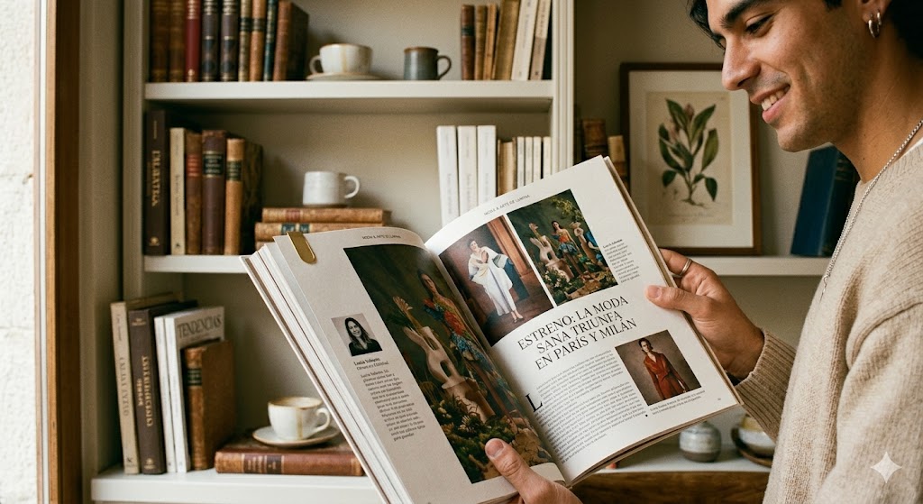 Tendencias no es una revista común. Es un objeto para guardar. Está hecha con papel de gran calidad. Tiene un diseño muy cuidado. Parece un libro de arte. En su estreno, habla de moda sana. Cuenta cómo triunfa en París y Milán. Su jefa es Lucía Valente. Ella quiere que la revista decore tu casa. Quiere que te ayude cada día. No es una revista para tirar. Es una joya para tu hogar. Te da ideas muy buenas. Es un placer para leer.